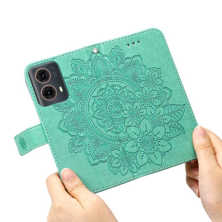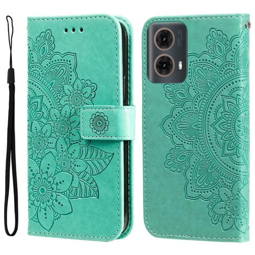 Funda de Cuero con Relieve Flores Siete Pétalos para Motorola Moto G85/S50 Neo (Verde)