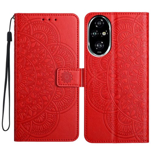 Funda de Cuero con Relieve Floral para Honor 200 Pro (Roja)