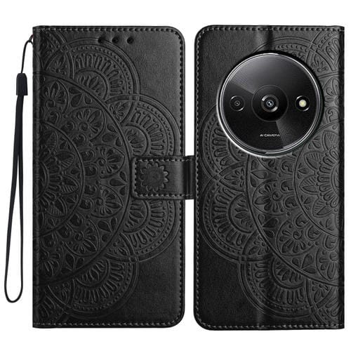 Funda de Cuero con Relieve Floral para Redmi A3 (Negra)