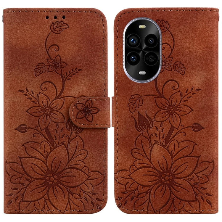 Funda de Cuero con Relieve de Lirio para Huawei Nova 13 Pro (Marrón)