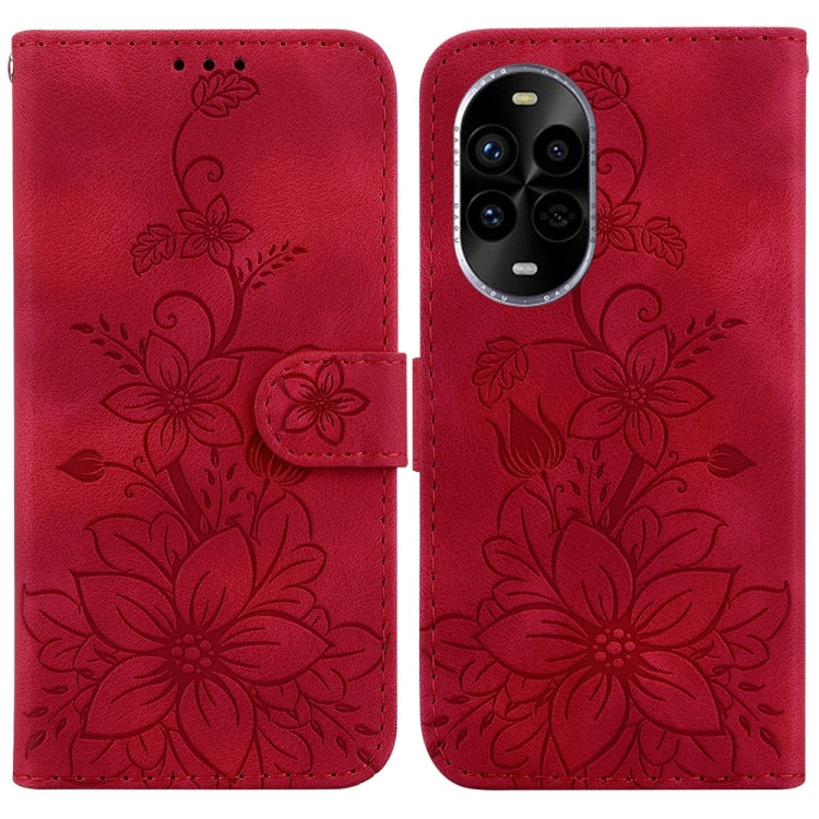 Funda de Cuero con Relieve de Lirio para Huawei Nova 13 Pro (Roja)