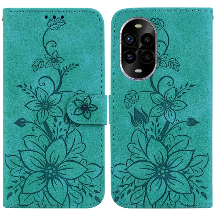 Funda de Cuero con Relieve de Lirio para Huawei Nova 13 Pro (Verde)