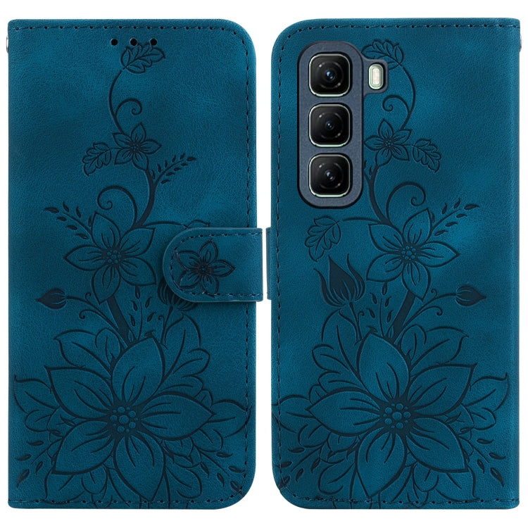 Funda de Cuero con Relieve de Lirio para Infinix Hot 50 4G (Azul Oscuro)