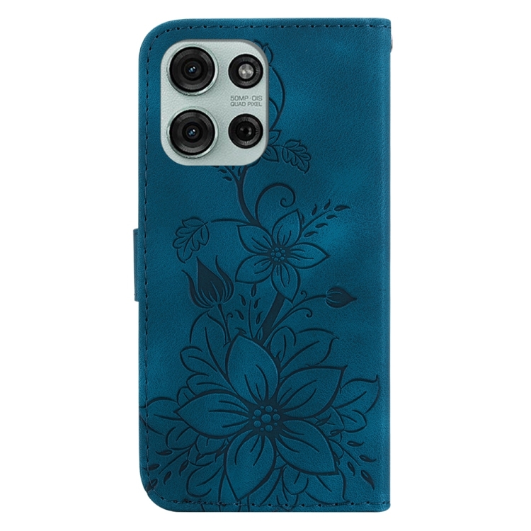 Funda de Cuero con Relieve de Lirio para Motorola Moto G75 5G (Azul Oscuro)