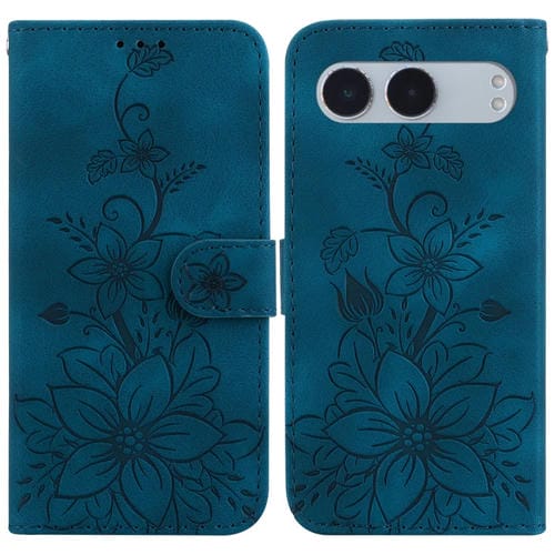 Funda de Cuero con Relieve de Lirios para OnePlus Nord 4 (Azul Oscuro)