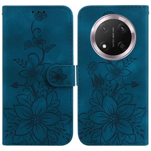 Funda de Cuero con Relieve de Lirio para Honor X9C (Azul Oscuro)