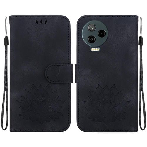 Funda de Cuero con Relieve de Loto para Infinix Note 12 Pro 4G y Note 12 (2023) (Negra)