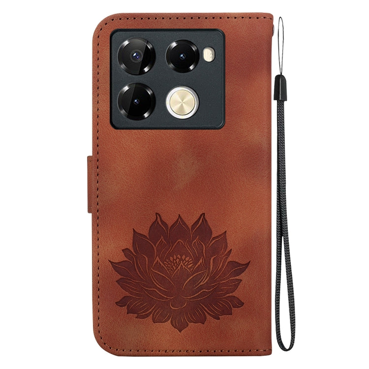 Funda de Cuero con Relieve de Loto para Infinix Note 40 Pro+ (Marrón)
