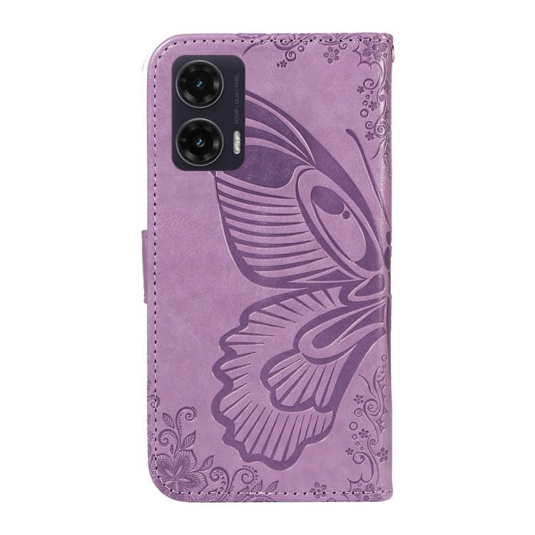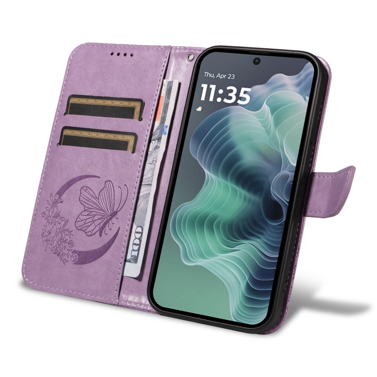 Funda de Cuero con Relieve de Mariposa para Motorola Moto G35 (Morado)