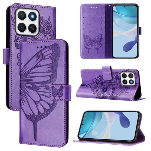 Funda de Cuero con Relieve Mariposa para Honor X8C 4G (Morado)