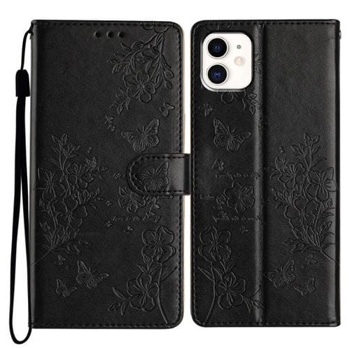 Funda de Cuero con Relieve de Mariposa y Flor para iPhone 11 (Negro)