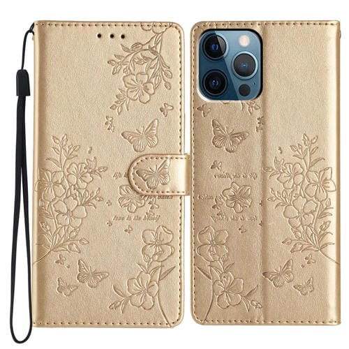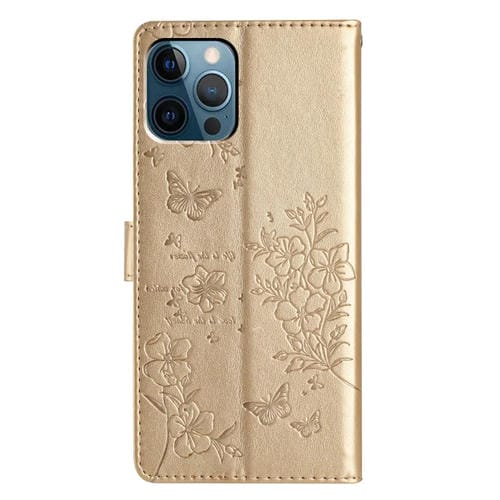 Butterfly Flower Embossed Leather Case for iPhone 12 Pro Max (Gold)