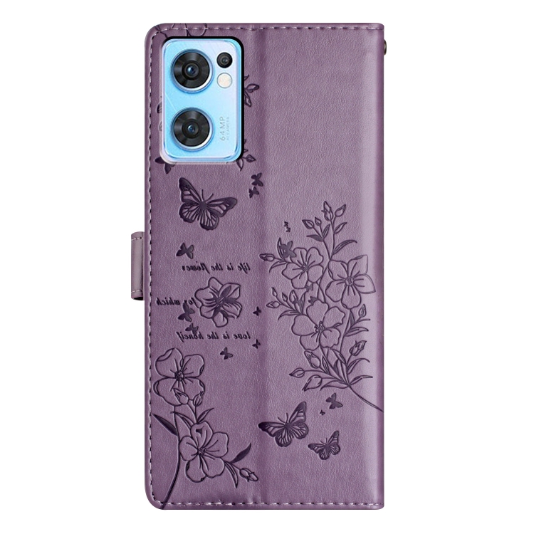 Funda de Cuero con Relieve de Mariposa y Flor para Oppo Reno7 5G (Morado)