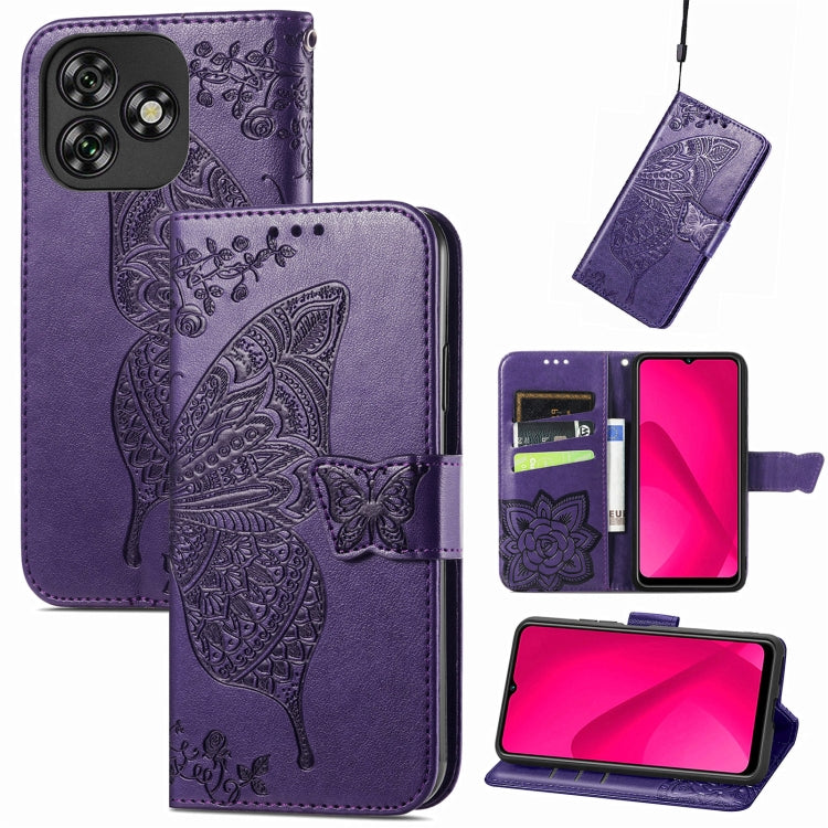 Funda de Cuero con Relieve Mariposa y Flor para Oukitel C53 (Morado)