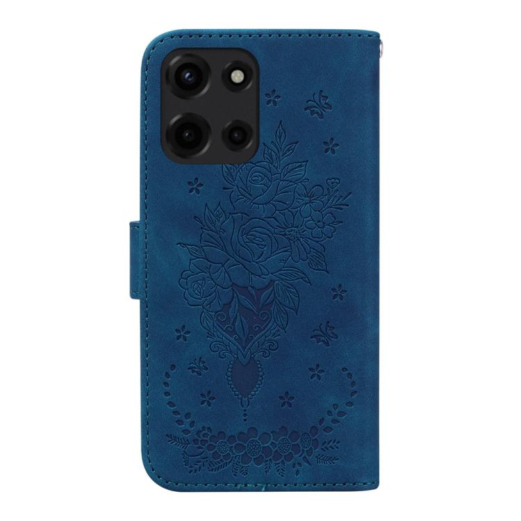 Funda de Cuero con Relieve Mariposa y Rosa para Motorola Moto G 5G (2025) (Azul)