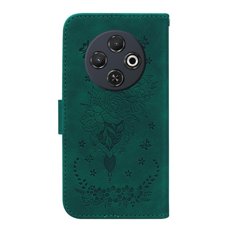 Funda de Cuero con Relieve Mariposa y Rosa para Tecno Spark 30C (Verde)