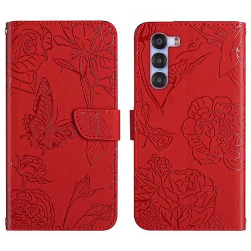 Funda de Cuero con Relieve Peonía y Mariposa para ZTE Nubia S 5G A403Zt (Rojo)
