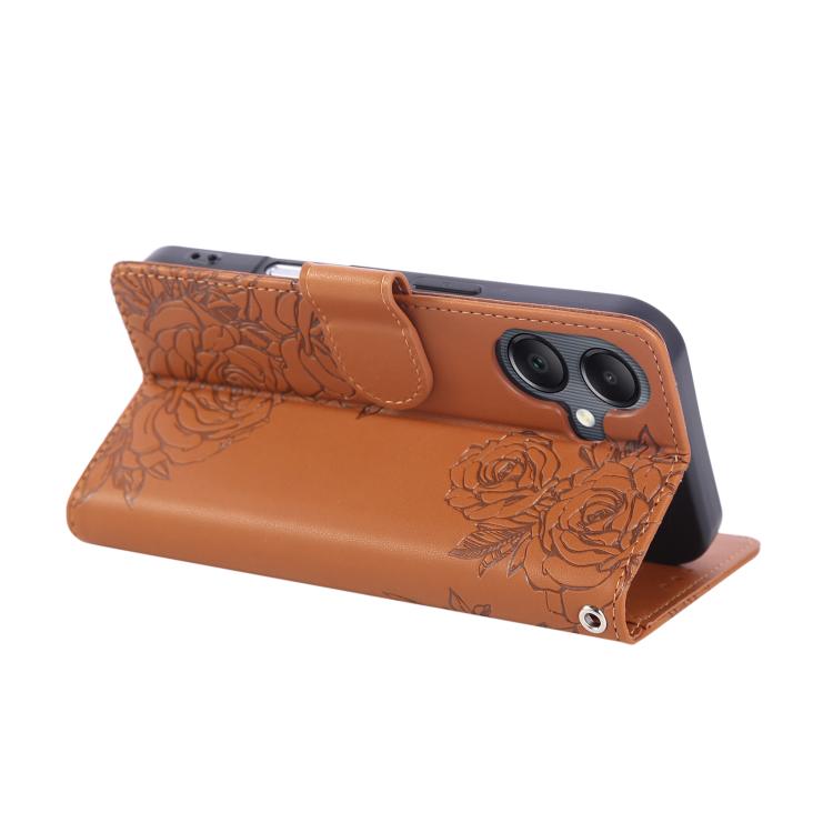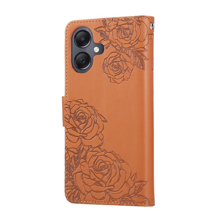 Funda de cuero con relieve de rosa para Samsung Galaxy A07 4G/5G, con 3 ranuras para tarjetas (marrón)
