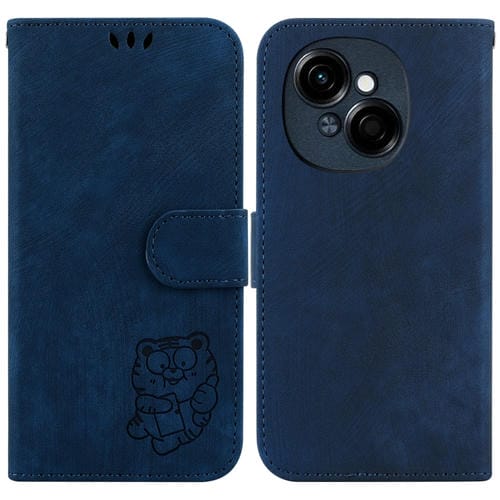 Funda de Cuero con Relieve de Tigre para Tecno Spark Go 1 y Pop 9 Pro (Azul Oscuro)