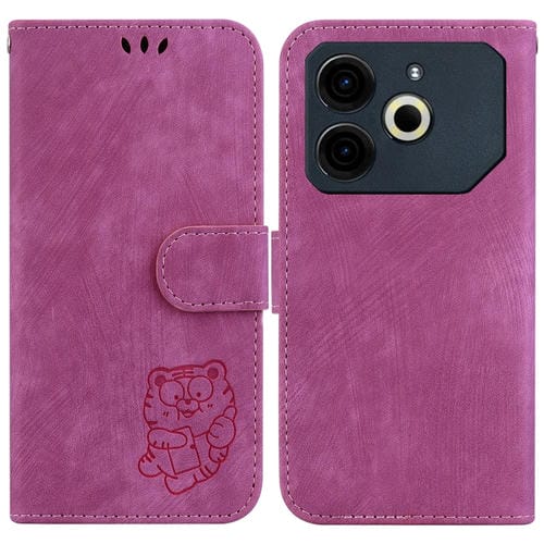 Funda de Cuero con Relieve de Tigre para Tecno Pova 6 Neo (Rosa Rojo)