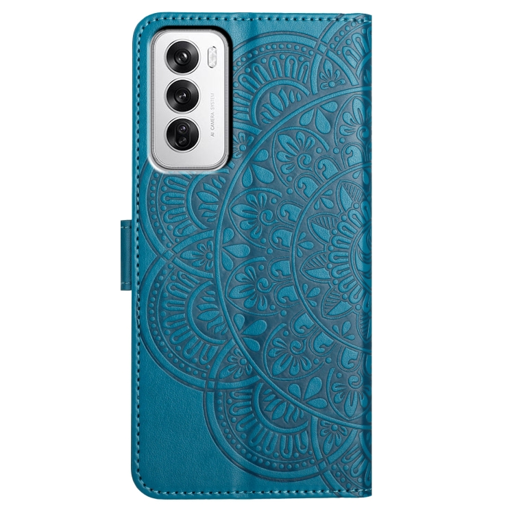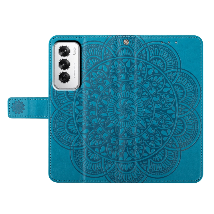 Funda de Cuero con Relieve Floral para Oppo Reno12 Global (Azul)