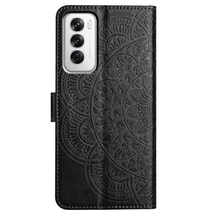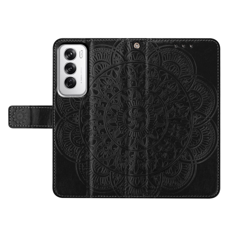 Funda de Cuero con Relieve Floral para Oppo Reno12 Global (Negra)