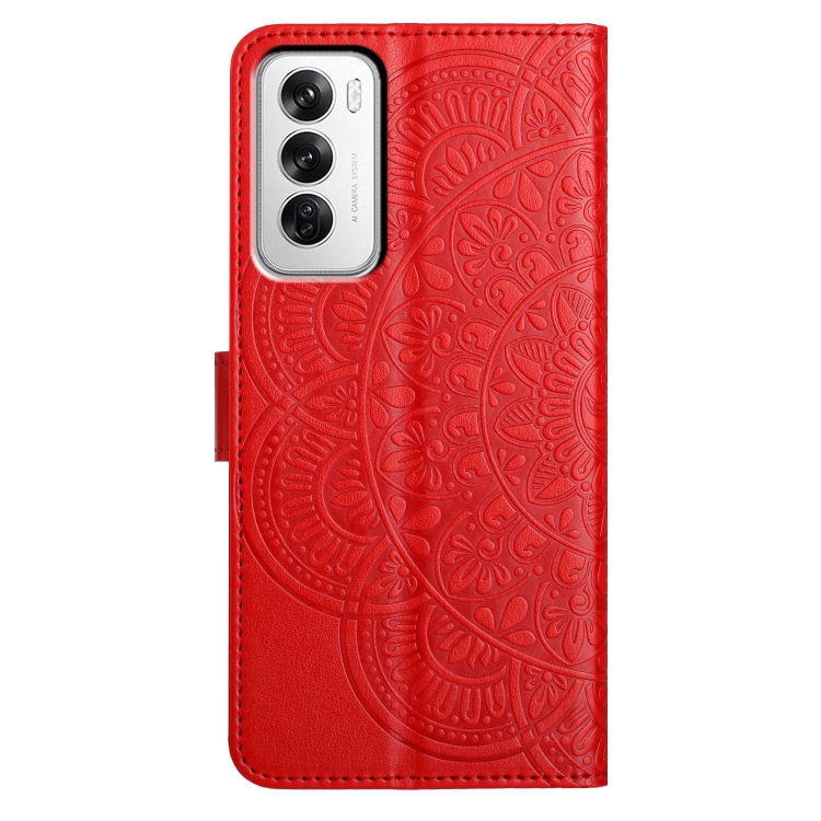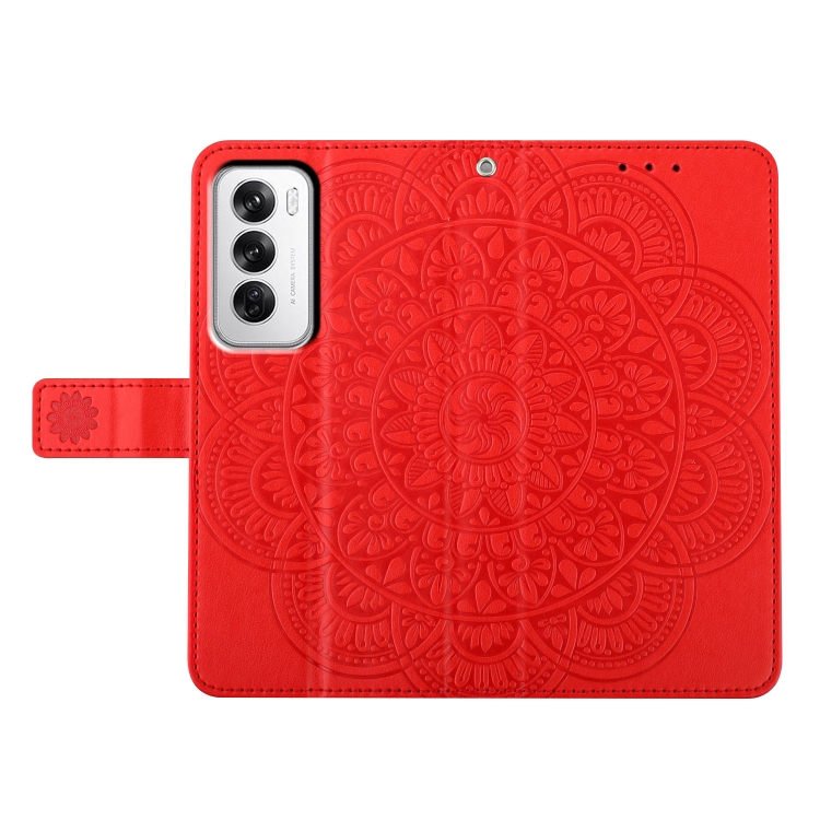 Funda de Cuero con Relieve Floral para Oppo Reno12 Global (Roja)