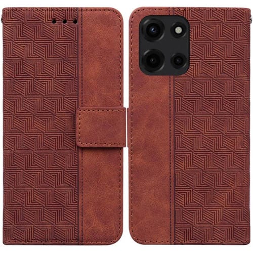 Funda de Cuero con Relieve Geométrico para Motorola Moto G 5G (2025) (Marrón)