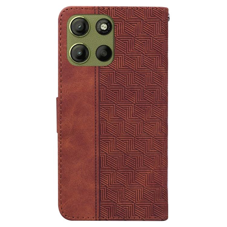 Funda de Cuero con Relieve Geométrico para Motorola Moto G15 (Marrón)