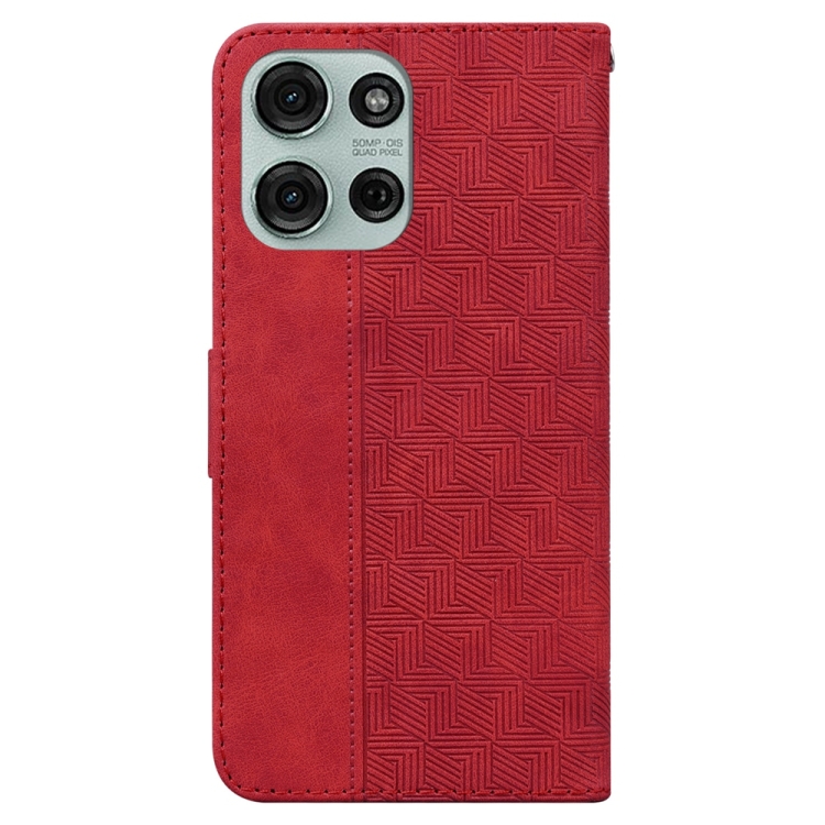 Funda de Cuero con Relieve Geométrico para Motorola Moto G75 5G (Rojo)