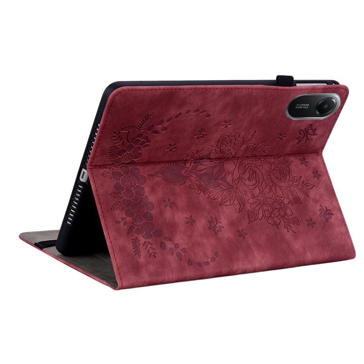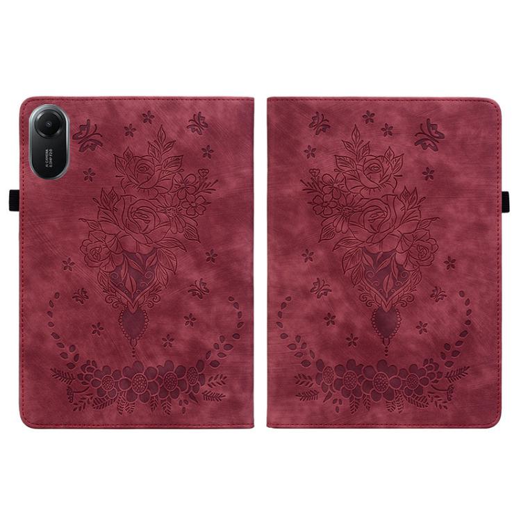 Funda de cuero con relieve mariposa rosa para Redmi Pad 2 / Redmi Pad SE 11 2025 (roja)