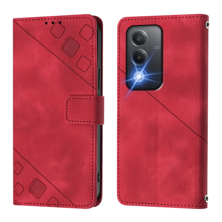 Funda de Cuero con Relieve para Teléfono Oppo A3 Pro 5G de la India (Roja)