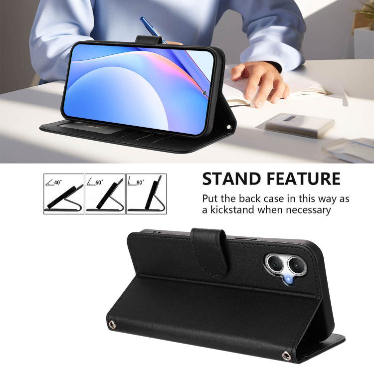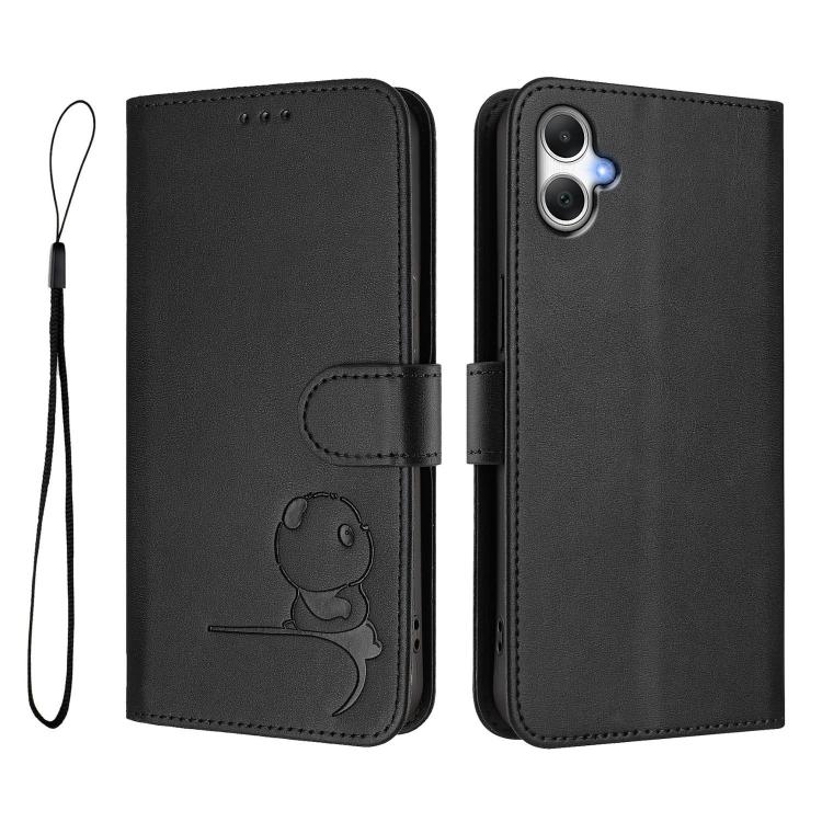 Funda de cuero con relieve RFID y cordón para Samsung Galaxy A07 4G (negro)