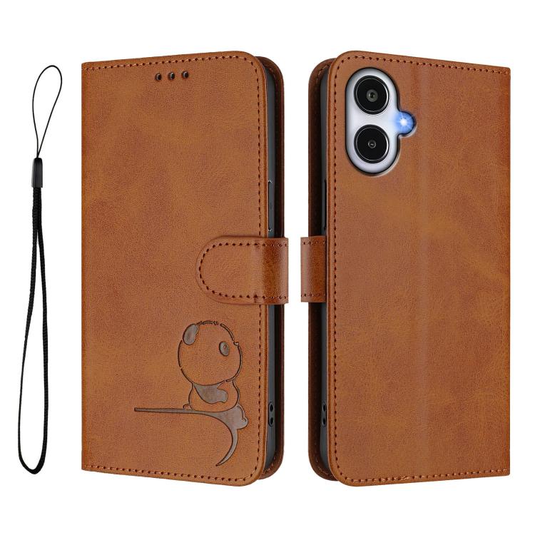 Funda de cuero con relieve RFID y cordón para Samsung Galaxy A25e/A25 5G (marrón)