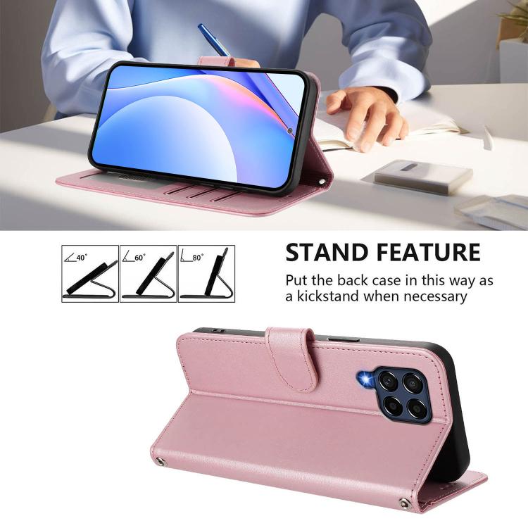 Funda de cuero con relieve RFID y cordón para Samsung Galaxy M53 5G (rosa)