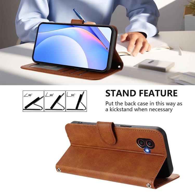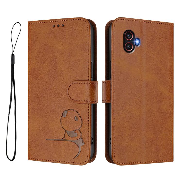 Funda de cuero con relieve RFID y cordón para Samsung Galaxy XCover6 Pro (marrón)
