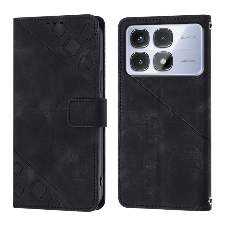 Funda de Cuero con Relieve y Tacto de Piel para Redmi K70 Ultra 5G (Negra)