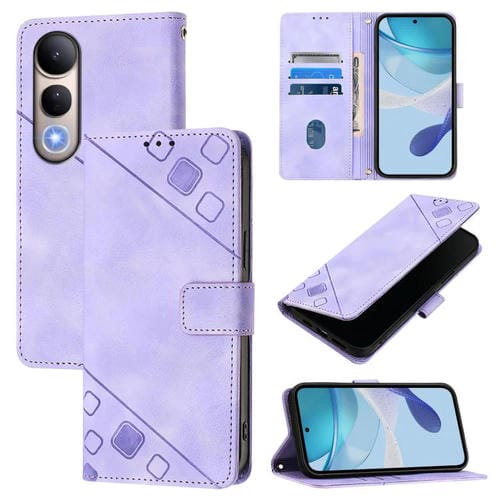 Funda de Cuero con Relieve y Tacto de Piel para Honor 400 Lite (Morado Claro)