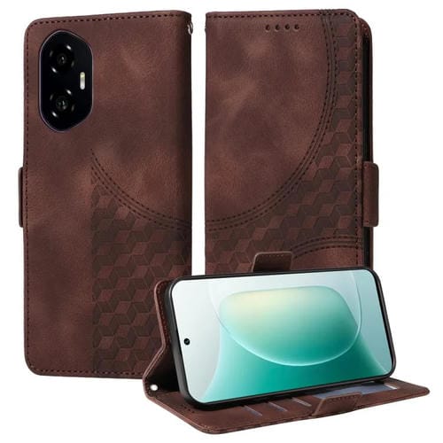 Funda de Cuero con Rombos y Estrellas en Relieve para Teléfono For Honor 300 (Marrón)