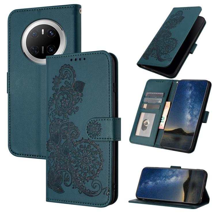 Funda de Cuero con Tapa y Relieve Flor de Datura para Huawei Mate 70 (Verde Oscuro)