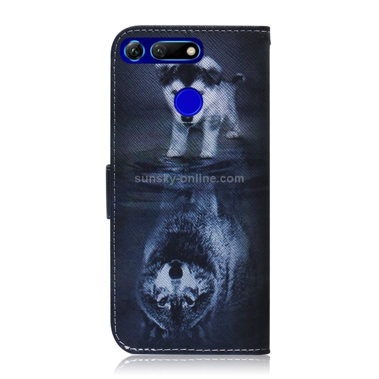 Funda de Cuero con Tapa Horizontal para Huawei Honor View 20 con Soporte y Ranuras (Lobo y Perro)