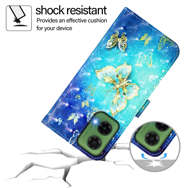 Funda de Cuero con Tapa Horizontal y Pintura 3D para Motorola Moto G35 (Mariposa Dorada)