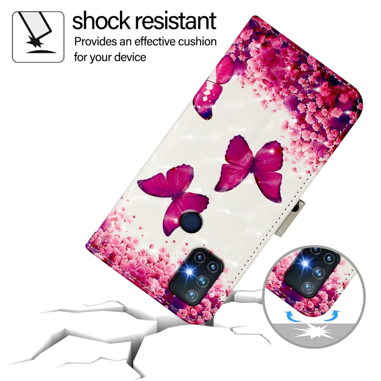 Funda de Cuero con Tapa Horizontal y Pintura 3D para OnePlus Nord N10 5G (Mariposa Rosa)