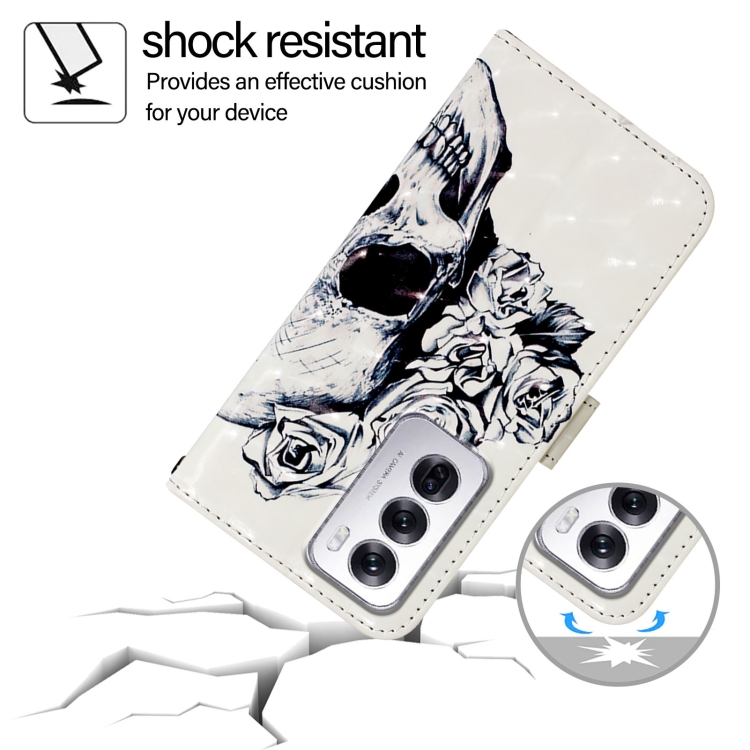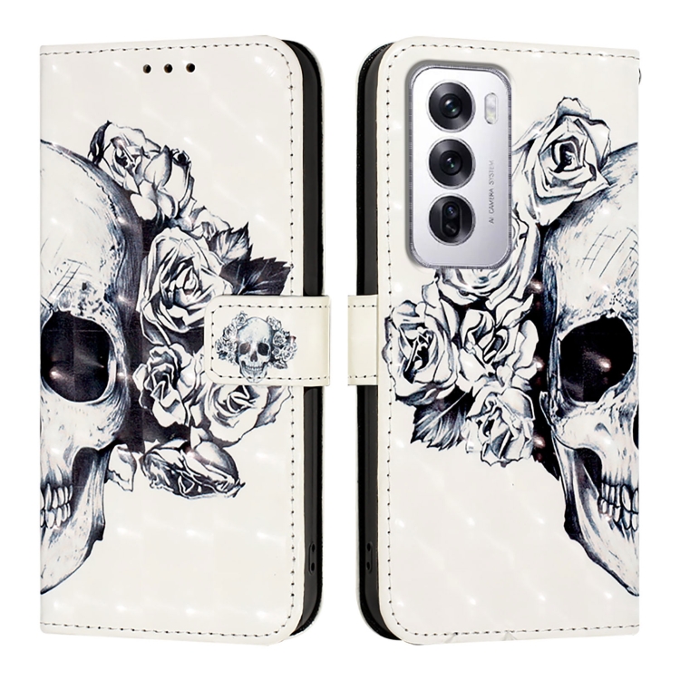 Funda de Cuero con Tapa Horizontal con Pintura 3D para Oppo Reno12 Global (Calavera)