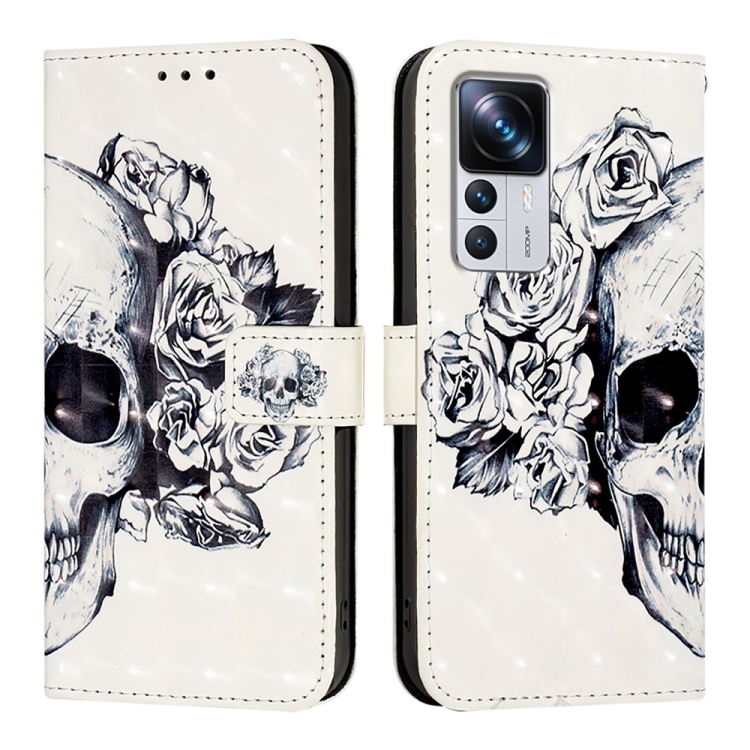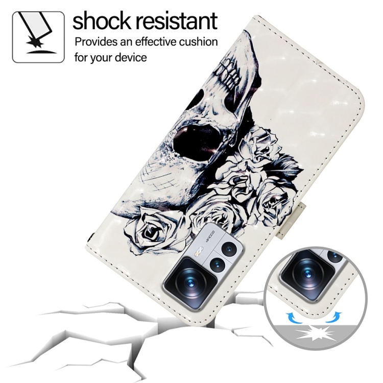 Funda de Cuero con Tapa Horizontal con Pintura 3D para Redmi K50 Ultra / Xiaomi 12T / 12T Pro (Calavera)