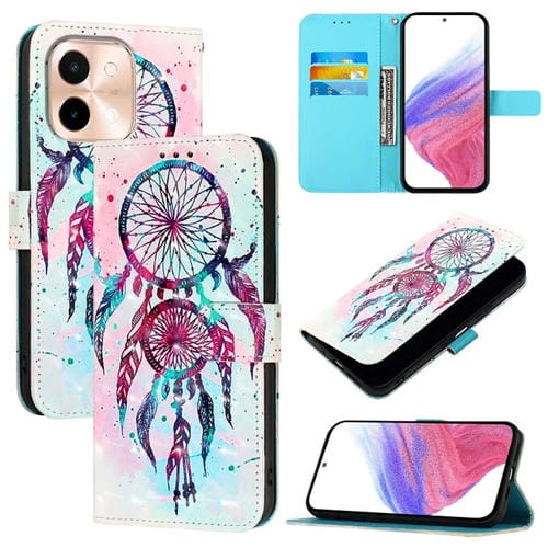 Funda de Cuero con Tapa Horizontal con Pintura 3D para Vivo Y28 4G (Campanas de Viento con Gotas de Colores)