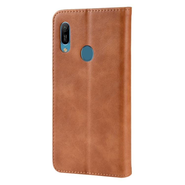 Funda de Cuero con Tapa Horizontal Hebilla Magnética para Huawei Y6 (2019) con Soporte y Ranuras (Marrón)