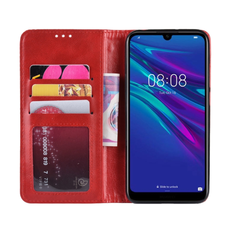 Funda de Cuero con Tapa Horizontal para Huawei Y6 (2019) con Hebilla Magnética, Soporte, Ranuras y Marco de Fotos (Rojo)