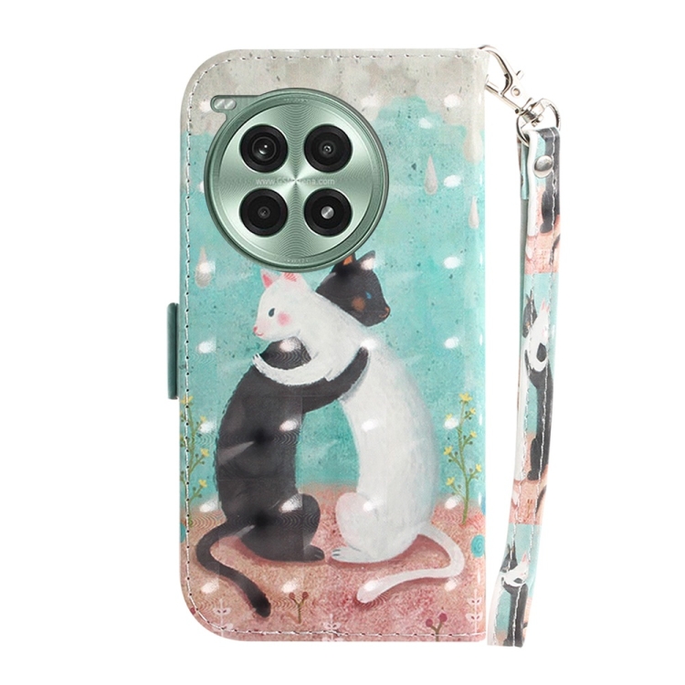 Funda de Cuero con Tapa Horizontal 3D para OnePlus Ace 3 Pro (Gato Blanco y Negro)