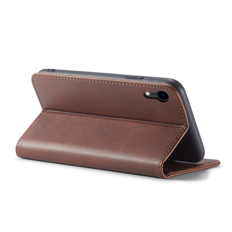 Funda para iPhone Xr Cuero Textura Becerro Tapa Horizontal Magnética Soporte Ranuras Tarjetas Billetera (Marrón)